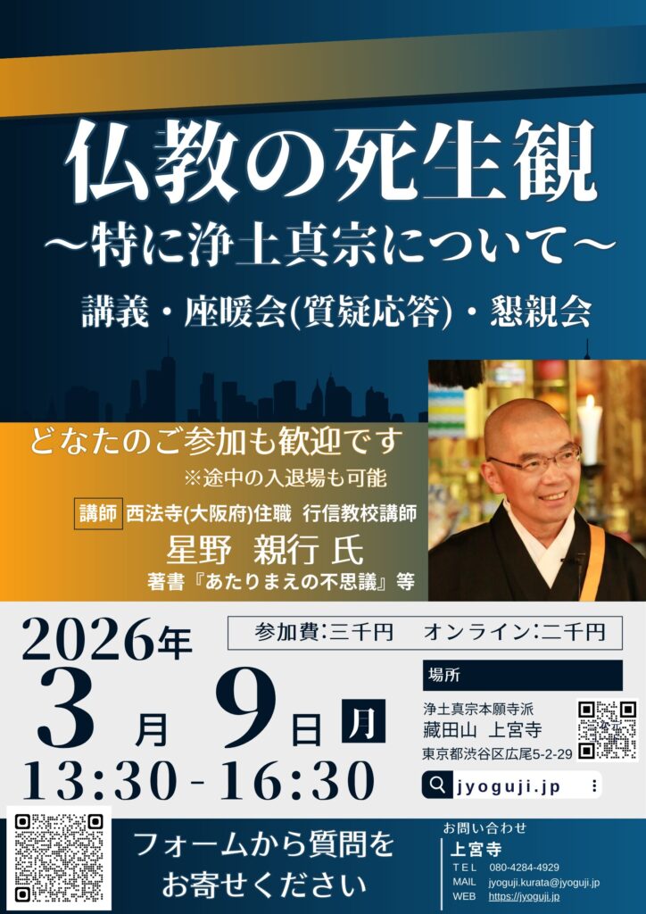 【どなたも歓迎🌸】3/9「仏教の死生観」(星野親行先生勉強会・懇親会)🎤質問も募集中