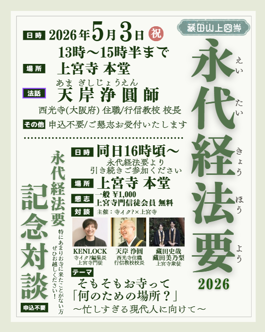 上宮寺の永代経法要を、5/3(日)に開催します。