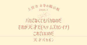 2025年10月~11月の、上宮寺の法座をお知らせします🍂 日程 講師 10/18(土) 14:00~ 第3土曜_常例法座~引き続き、ボイストレーニング講座~ 横内教順 師 (東京都文京区 称名寺) 11/2(日) 13 […]